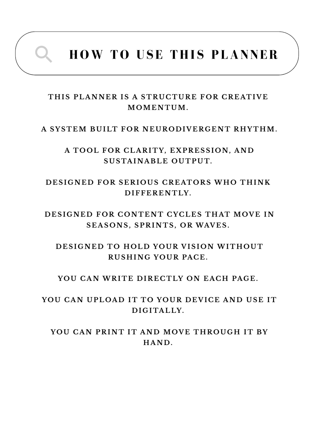 FOR CREATORS WHO MOVE BEST THROUGH SIMPLICITY AND STRUCTURE